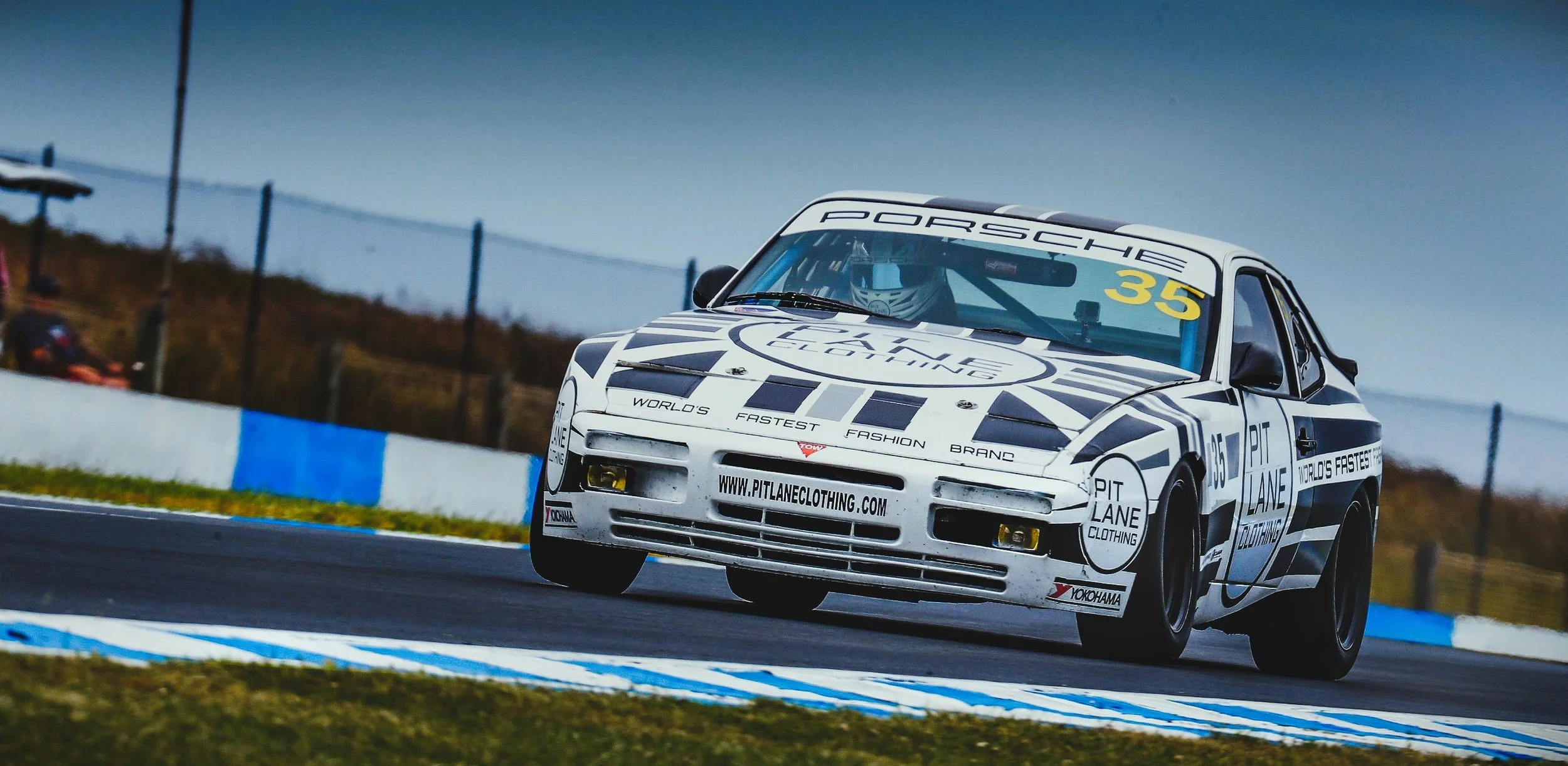 Jack Atley is seen behind the wheel of the Pit Lane Clothing Porsche 944